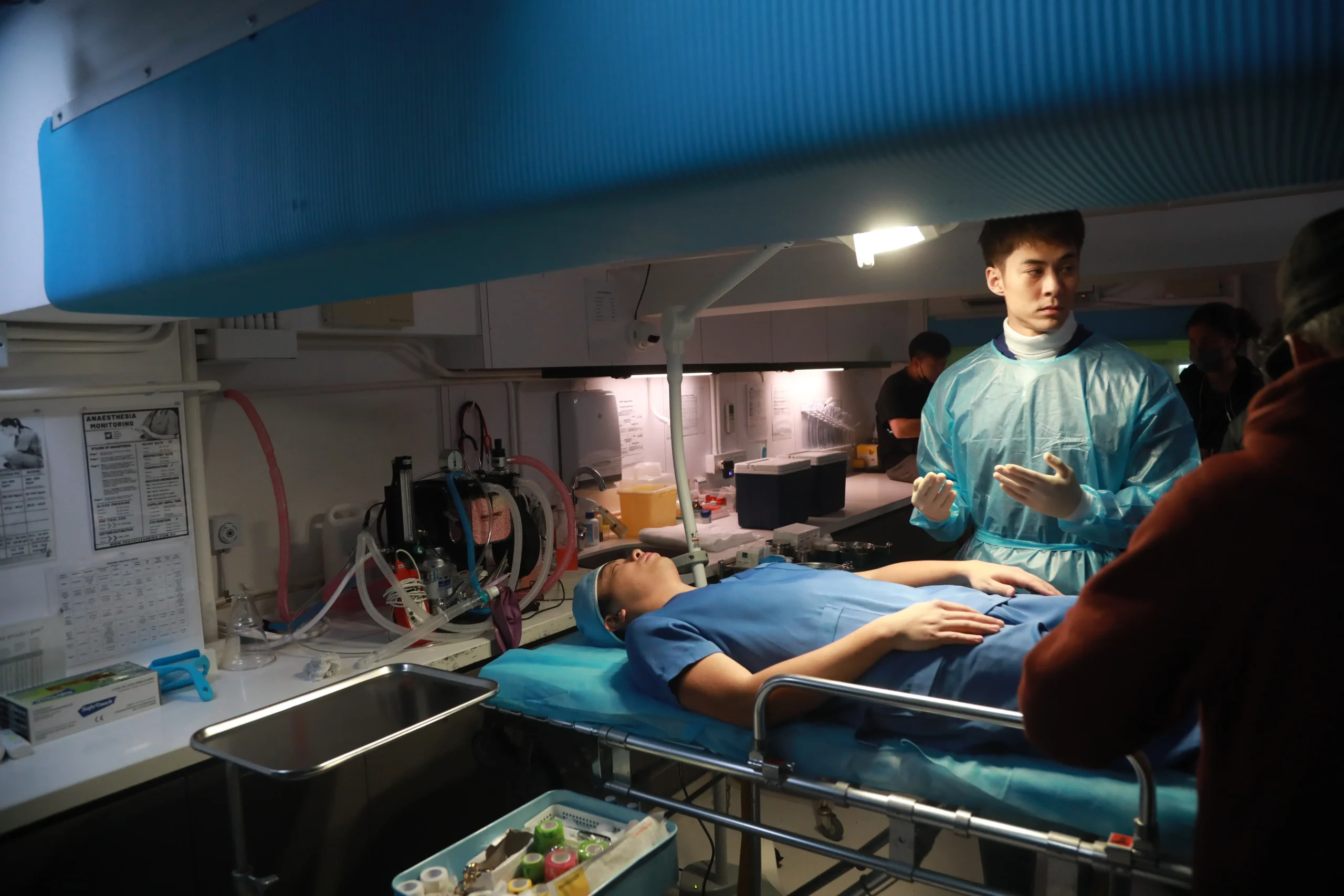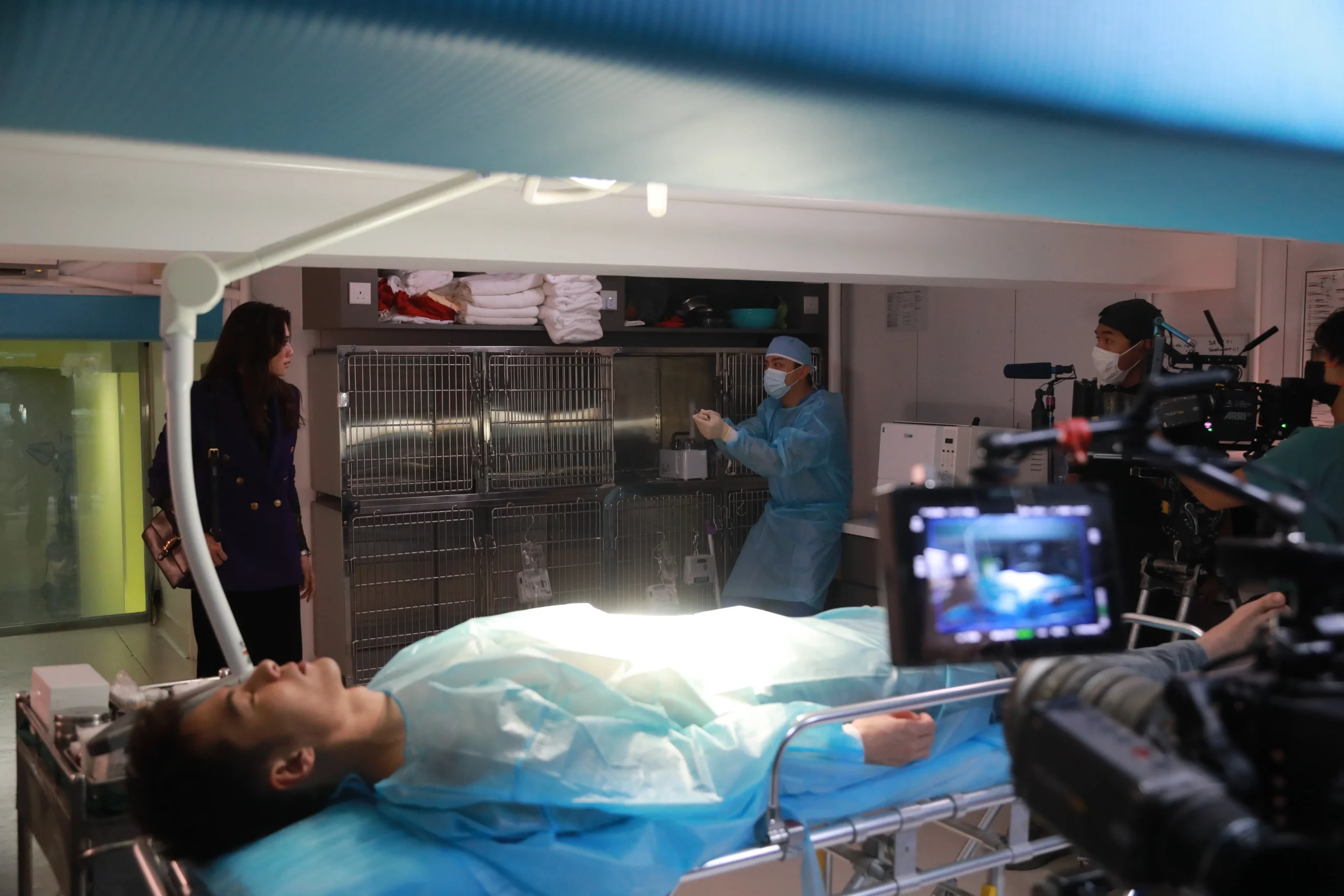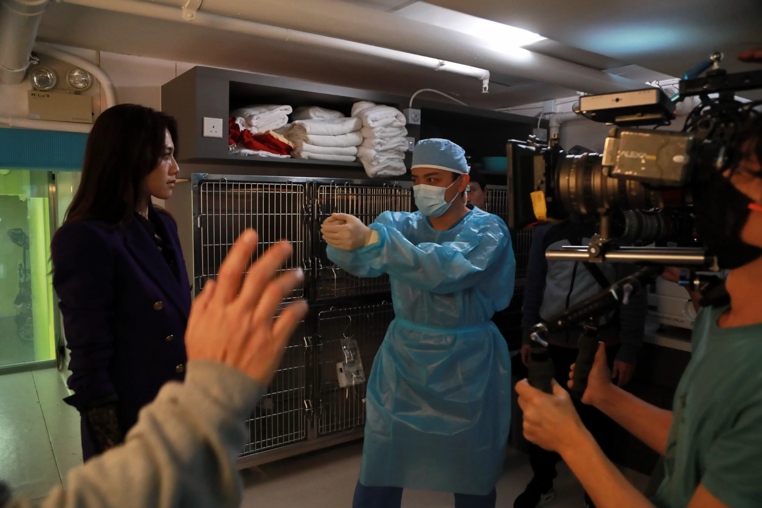 雖然Van要遭受娜姐拳打腳踢兼叉頸,還要被五花大綁在手術床上,但Van認為今天的拍攝,每位男士睇完都會既羨慕、又妒忌。「剛才俾娜姐壁咚,足足一個鐘,不斷將我個頭推埋牆,好近距離,雖然有啲痛,但係俾娜姐壁咚喎,反而係冇諗過今日要有動作戲,要被打、被劏、被壁咚。」Van說。身旁的朱鑑然也搞笑說:「我都有呀!我都有呀!剛才娜姐好大力捉實我手臂講對白。」