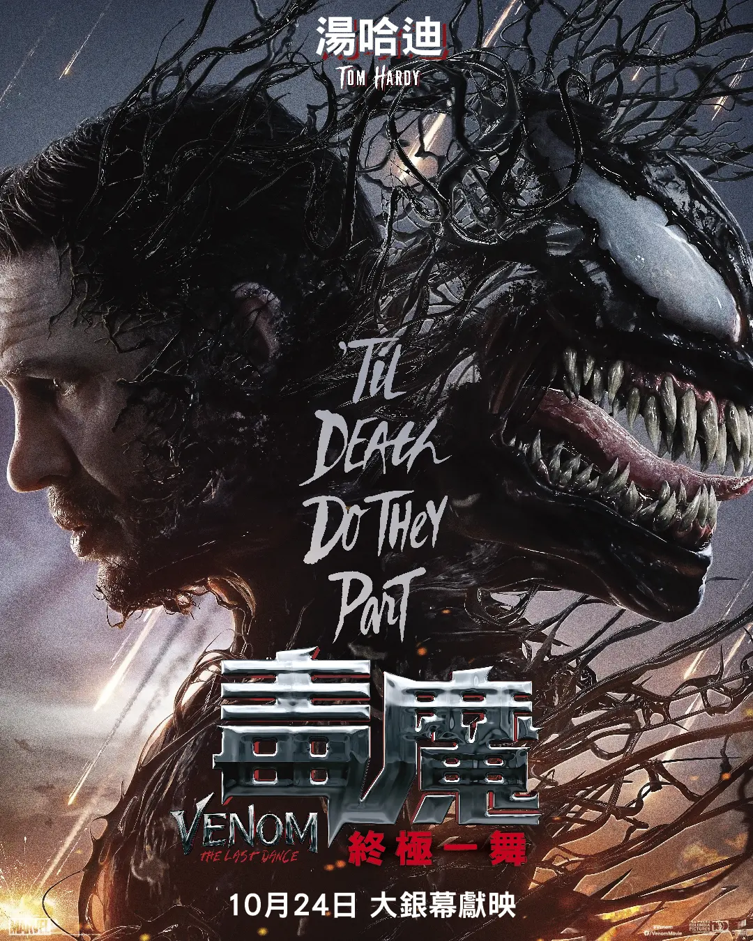 Sony Pictures榮譽發行MARVEL年度矚目鉅製《毒魔》系列最終章《毒魔:終極一舞》(Venom: The Last Dance)將於今年10月24日回歸大銀幕!首兩集全球票房大收,金像提名男星湯哈迪(Tom Hardy)再度回歸飾演備受喜愛的反派英雄毒魔。