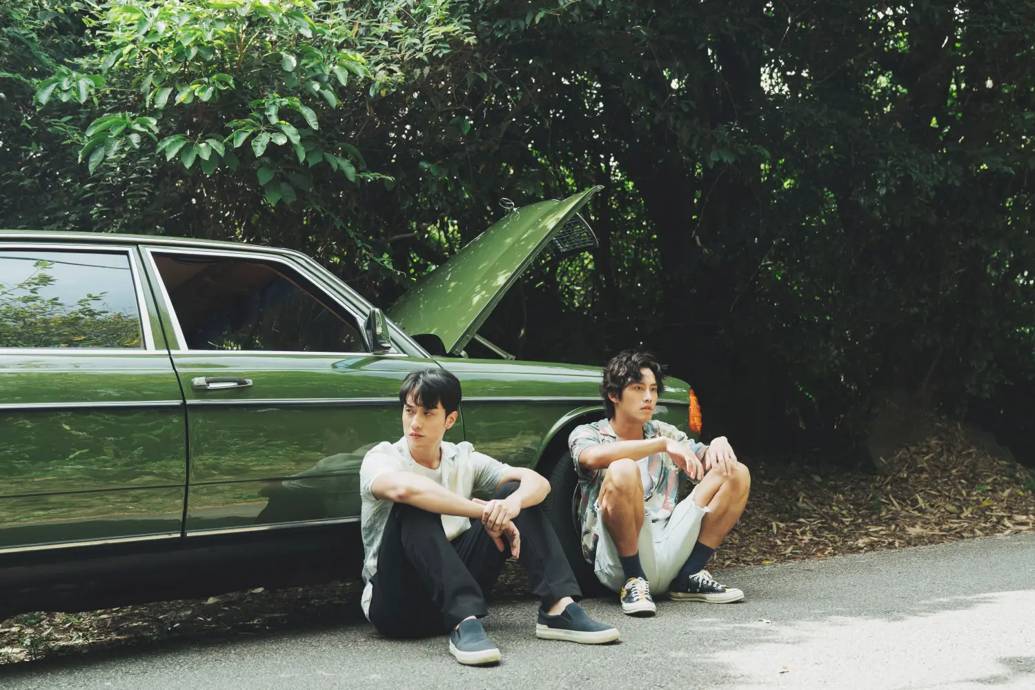 范少勳在片中開古董車載劉俊謙上山下海,劇組找來一台綠色賓士古董二手車,過去曾開過一年多 UBER 的范少勳可說是「老司機」,對駕駛技術頗有信心,但實際操作後坦言挑戰大,因古董車方向盤不易操作,而且轉彎處會自動熄火。不過劉俊謙卻非常滿意,大讚他技術好: 「我開車很爛,少勳開我很放心,有種CHILL 感!」