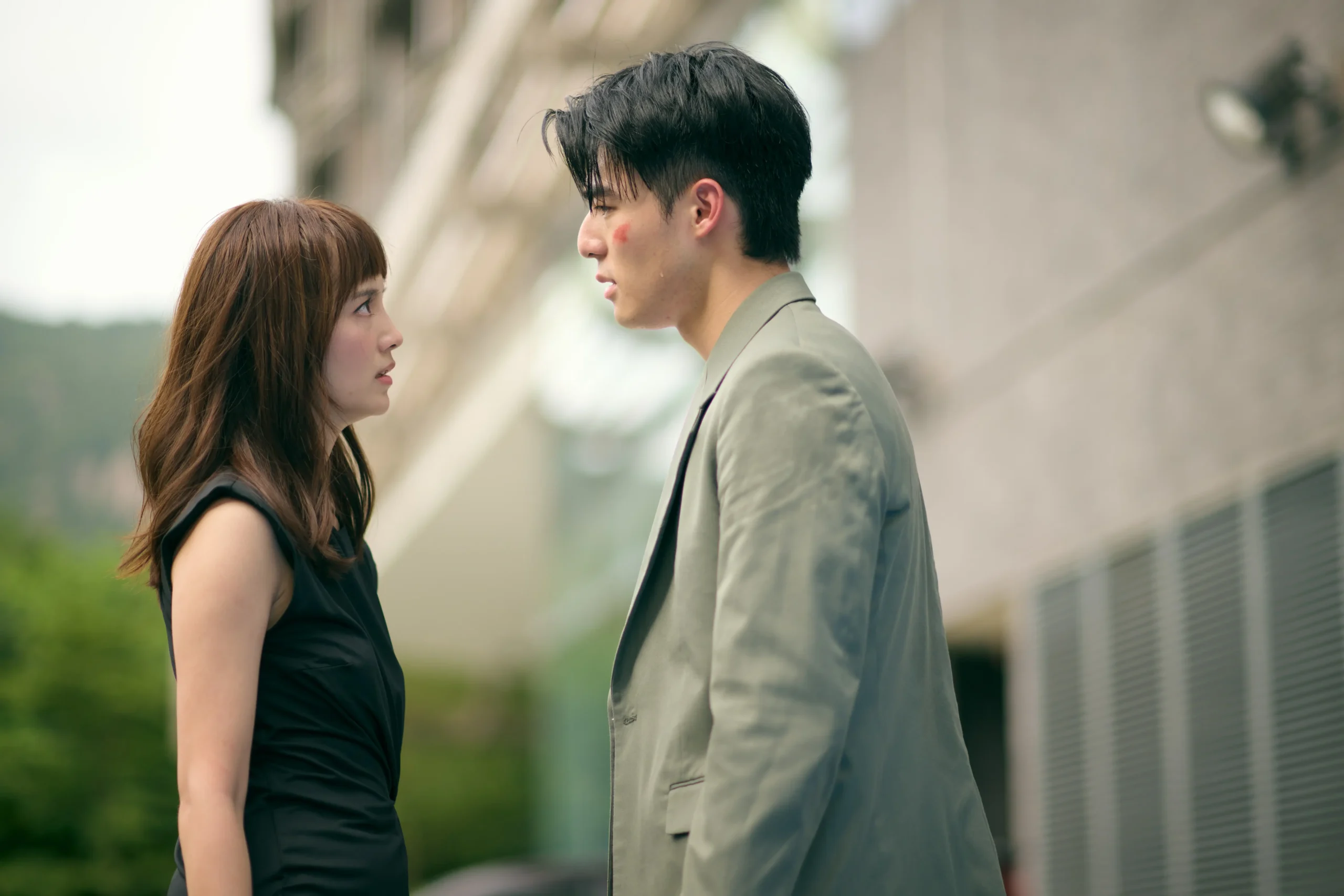 陳昊森說:「我唔痛,我以前拍戲都有被打,訓練過。其實被她打了幾巴掌,真的有幫助入戲,謝謝!」仔細看,雖然他臉上只有特技化妝的傷勢,但頸上有一條真的血痕。Anjaylia小心翼翼拉開他的衣領,一邊自首:「估計係佢擄走我、一片混亂、掙扎嘅時候抓到佢。」受傷的陳昊森盡顯紳士風度,笑著安慰她不要內疚。