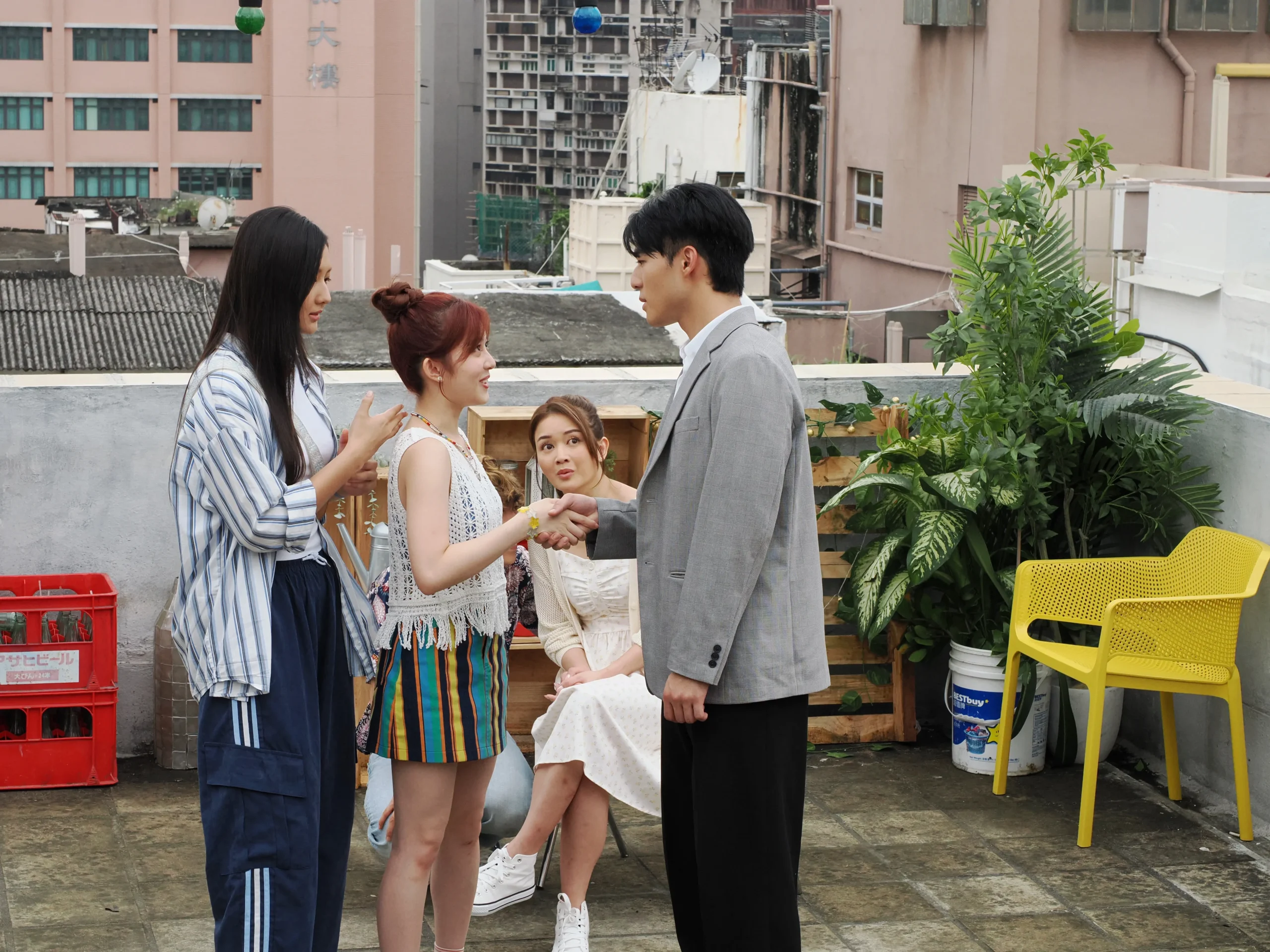 拍攝當日太陽猛烈,陳昊森厚厚的西裝亦滲出汗水,但他不理自己汗流浹背,堅持與Anjaylia和導演葉念琛,商量拉扯和掌摑動作以配合拍攝,希望大家都在最佳狀態下發揮。Anjaylia說:「好感恩陳昊森係一個好好嘅對手,事前好好商量,非常紳士,我深感愧疚。」她又說:「佢叫我幫佢投入情緒,要我連摑幾巴。我背住鏡頭大家睇唔到,打到我都幾乎喊,連續打咗五、六巴掌,真係要用力先可以幫到佢入戲,但我心裏一直祈禱『快啲完啦』,真係唔忍心再摑佢!」戲中另一女角林熙彤(Hazel)因為其他戲份所以在場,原來戲裏戲外她都是陳昊森迷妹,Anjaylia透露Hazel預先警告她不要傷到男神,如今真的受傷了,Anjaylia笑言:「唔該下次畀場戲佢打返我啦!」
