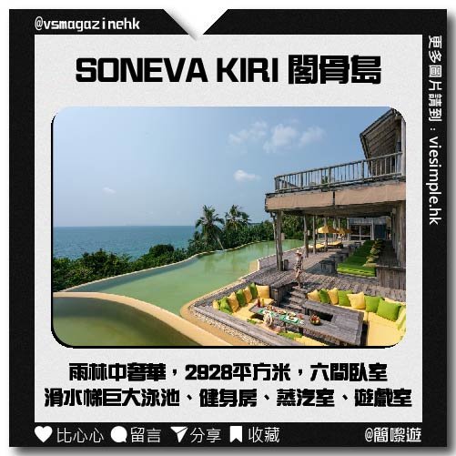 Soneva Kiri以其無與倫比的奢華和環保理念而聞名,它坐落在一個未受破壞的島嶼上的鬱鬱蔥蔥的雨林中,擁有泰國最好的海灘。佔地2928平方米,擁有六間臥室,可容納16位客人。對於孩子們來說,樹屋是一個夢想成真的地方,在一個私人的叢林樹冠中,他們自己的王國。有一間獨立的主臥室,配有步入式更衣區和帶室外梳粧檯、閃電式淋浴、蒸汽室和浴缸的浴室。另外四間套房臥室配有室內和室外淋浴、浴缸和個性化甲板區域。其他吸引人的特色是巨大的游泳池,有自己的水滑梯、健身房和蒸汽室、遊戲室、戶外餐桌和巨大的日間床上的超大墊子,可以俯瞰水面。