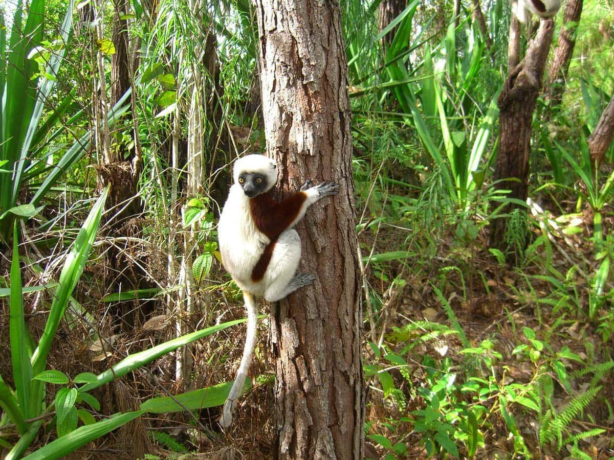 曾有個打印機廣告,一隻猴子樣動物高舉雙手,横身跳躍,如若舞者,狀甚有趣,就讓筆者走進馬達加斯加原始森林。狐猴 (lemur)非猴,屬哺乳綱靈長目,臉若狐、身似猴,如兩者合體,故有此名。狐猴是樹棲動物,要看就得走入森林,仰首碰運氣。馬達加斯加每年1到3月是雨季,不宜旅遊,筆者卻因假期而逆天意。冒雨入林已不易,泥濘如水,舉步維艱,螞蟥(leech)多如牛毛,在樹葉上昂首作勢,隨時出擊,噁心卻無奈,最終雙腳多處被咬,血跡斑斑。幸好也有天晴時,看到最想看到的Sifaka,是狐猴60多個品種之一,也就是前述廣告那種。體形不太大,就像隻普通猴子,穿上咖啡白色皮草,活像絨布公仔,可愛之極,不枉千里而來。狐猴以外,森林裡也多變色龍,顏色鮮艷,導遊說島上野生動物都沒毒,也就放心拿在手上玩,牠們似乎只當我們是樹枝,毫不客氣在身上爬來爬去。蛇也不少,卻非筆者所好,看看好了,不想去碰。