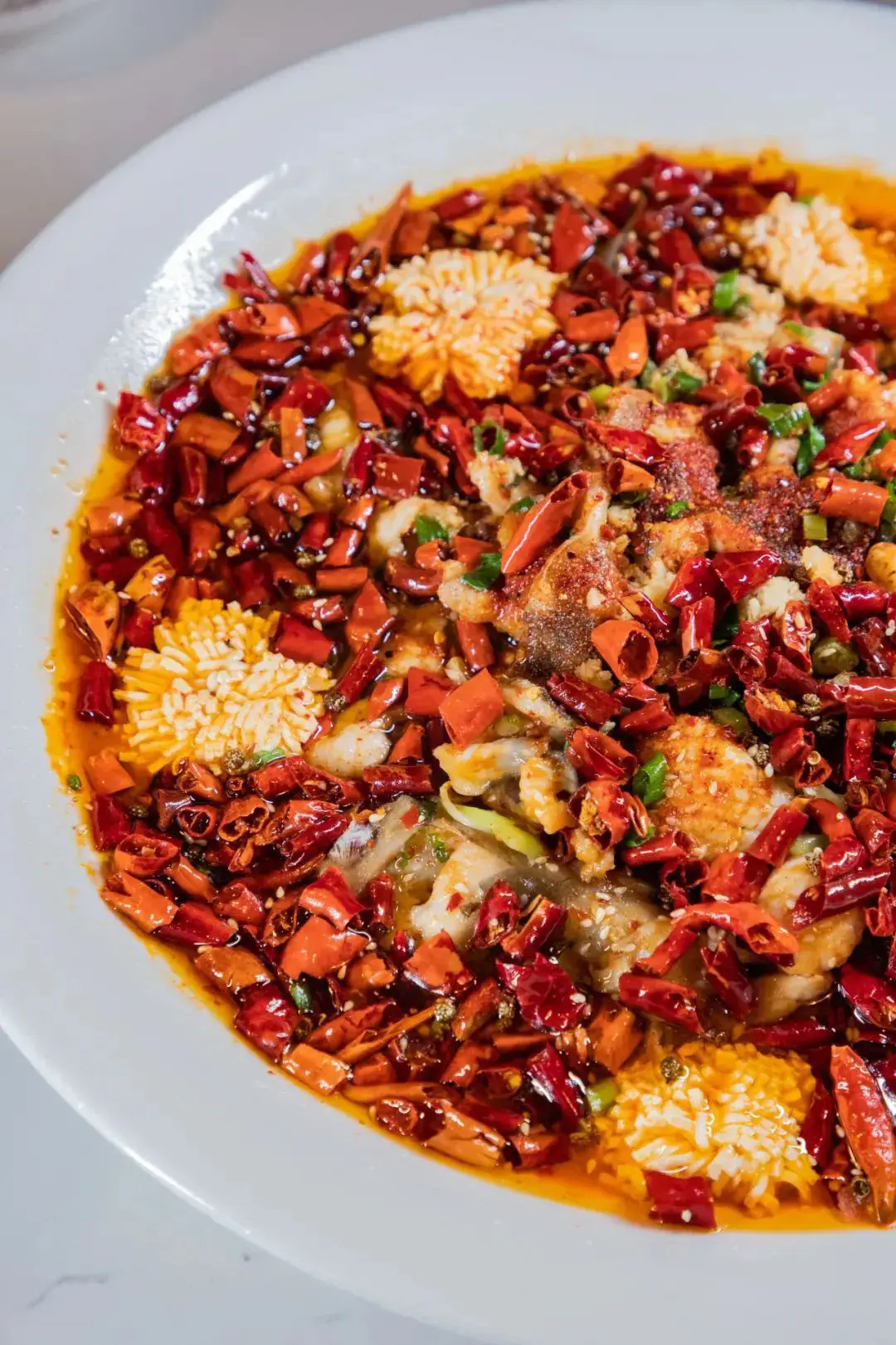 店裡招牌水煮魚,鱸魚每日新鮮即宰,他們做魚很講究,魚片約2mm,豆花呈絲狀,非常考驗師傅刀工,最後淋上熱油把魚的鮮味都逼出來,太好吃了!