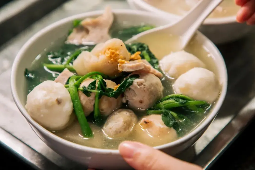 西洋菜湯也是必試的!湯的配料很豐富,有西洋菜、墨魚丸、魚餃和豬肉丸,湯底鮮甜,丸子彈牙,清淡之選。