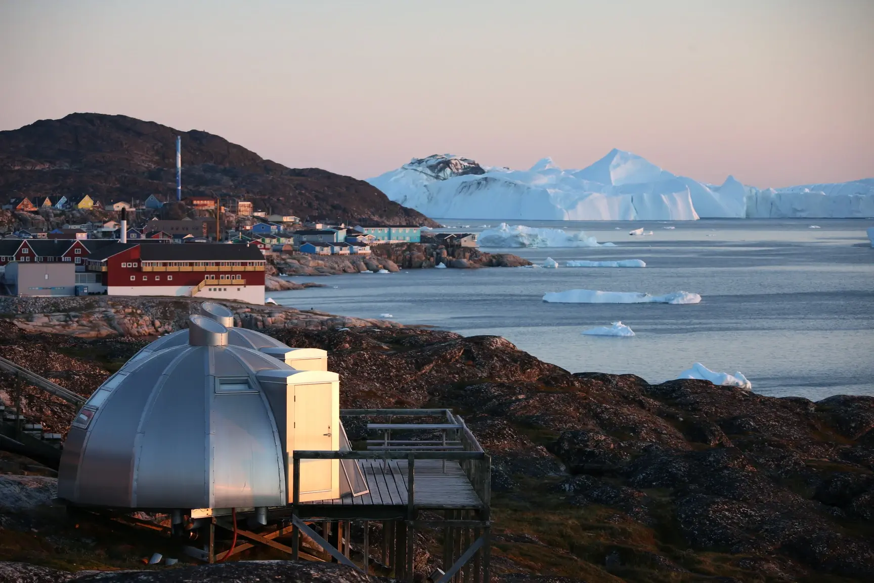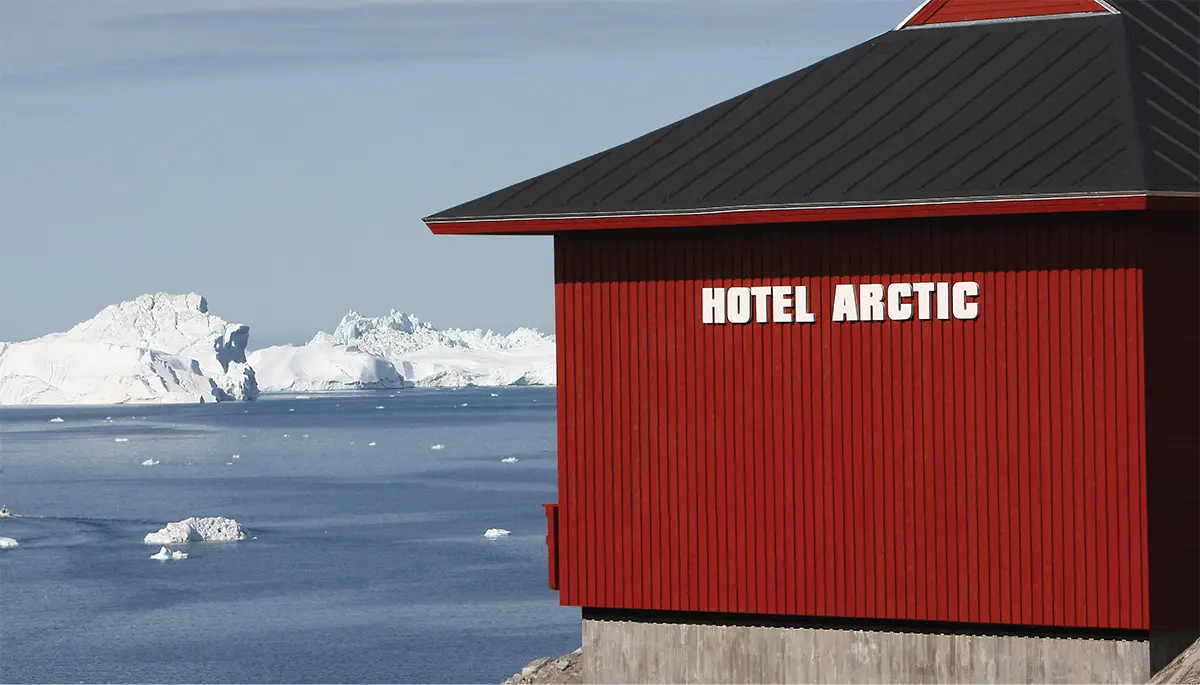 Hotel Arctic位於伊盧利薩特冰峽灣,是世上位置最北面的四星級酒店,酒店的形狀是受到因紐特人冰屋的啟發而建造,酒店的格調高雅,採用了典型的北歐設計裝修風格,客房內擺放著當地藝術家的作品。住在這裡,推窗就能觀賞到冰山美景,運氣好還能看到極光。