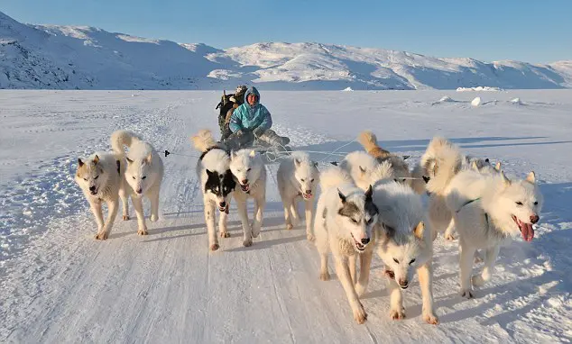 格陵蘭犬是源自西伯利亞的古老犬種,外觀與哈士奇相似,只是體型較大。牠們性格溫和、有堅強的耐力,生命力頑強,厚厚的毛能抵禦嚴寒天氣。格陵蘭人會把牠們視為工作夥伴而非寵物。所以來到格陵蘭坐狗拉雪橇,體驗因紐特人2000多年歷史的傳統出行方式,坐上雪橇穿梭在遼闊的雪原,耳邊是格陵蘭犬的喘息聲和雪橇劃過雪地的聲音,是一次難得的體驗。