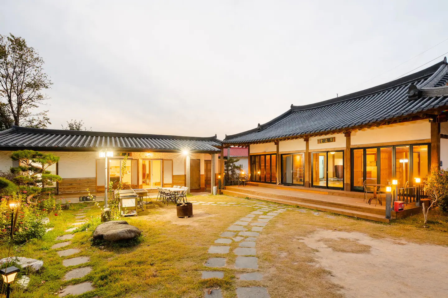 酒店坐落在翰京面的生態村內,有設備齊全的廚房、室內壁爐、私人游泳池和熱水浴池。在外面,長滿青草的後院非常適合生篝火、韓燒以及在傍晚螢火蟲出現時觀星。