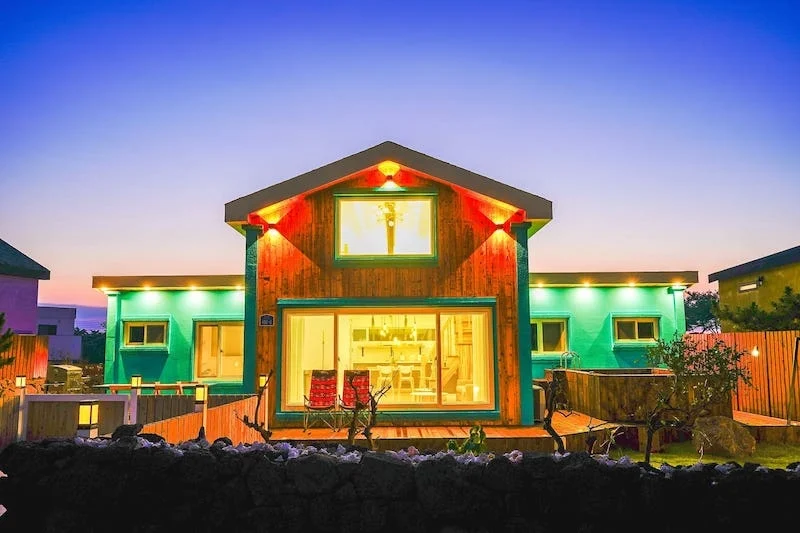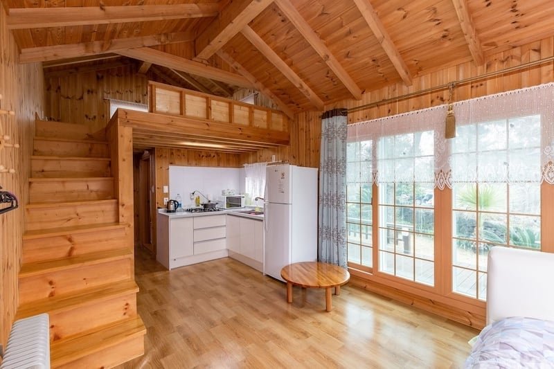 濟州島是在韓國感受大自然的絕佳選擇,這間木屋像是世外桃源,它有足夠空間供情侶和家庭入住,小木屋距離海灘不到10分鐘路程,想玩水非常方便。