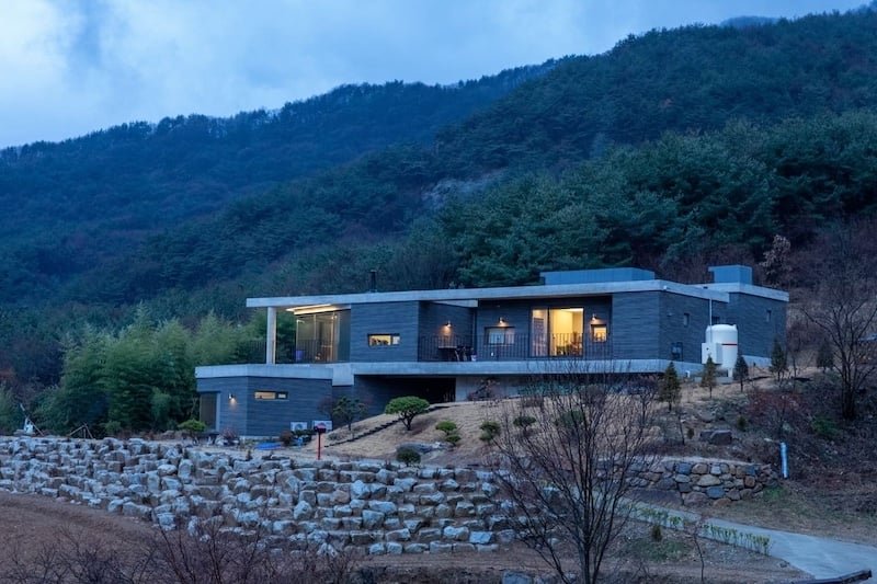 這間屋會讓你想到韓劇《寄生蟲》,從面向花園的寬大窗戶到清晰可見的立面,從遠處看一眼,你可以看到房子的燈光在森林中閃爍。這間屋還擁有酒店的現代化設施,使它更上一層樓。