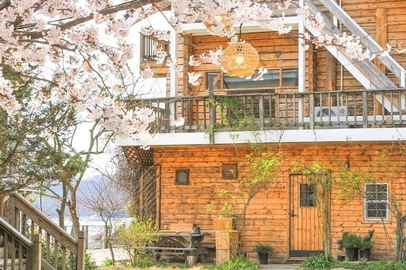 花園裡的櫻花樹旁有一間木屋,聽到海浪的聲音,打開窗邊的一本書,這裡可以找到內心的平靜。夜幕降臨時,從你最喜歡的韓劇角色裡找一頁,然後去屋頂,在這裡,你可以在天窗下看著夜空的繁星入睡。