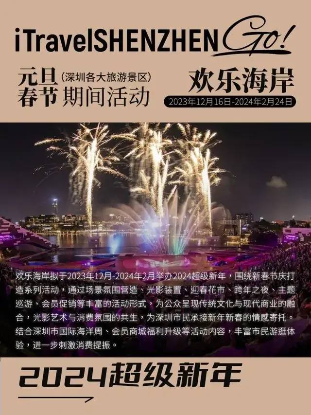 歡樂海岸圍繞新春節慶,透過場景氛圍營造、光影裝置、迎春花市、跨年夜、主題巡遊、會員促銷等豐富的活動形式,為大眾呈現傳統文化與現代商業的融合、光影藝術與消費氛圍的共生,讓深圳市民在這裡找到新年新春的情感寄託。