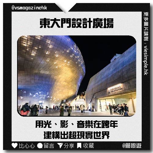 前往東大門設計廣場,欣賞220米的外立面,用燈光改造,營造出超現實的燈光世界。燈光和音樂表演從晚上7:00到晚上10:00結束,每小時整點進行。表演持續12分鐘,所以不要遲到。