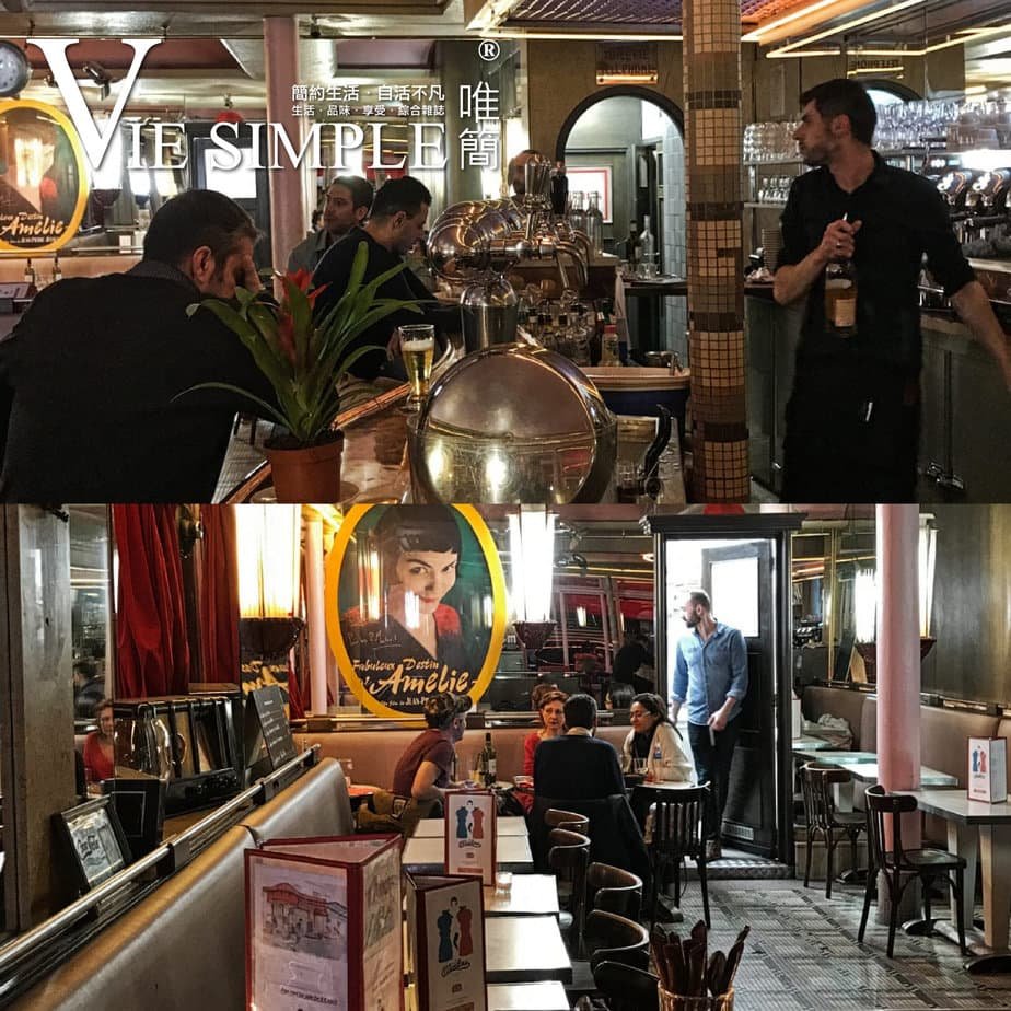 這一家咖啡店本來平平無奇,於 2001 年著名的法國電影 “天使愛美麗” (Amélie,Audrey Tautou 主演,亦因該電影一炮而紅) 上映後,這裡馬上變成遊客熱點,皆因女主角在電影內到咖啡店工作的地方是在這裡取景,當我親身走進內,馬上感覺走進了天使愛美麗的電影世界。