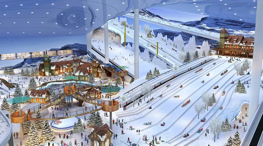 廣州融創雪世界佔地7.5萬平方米,分為三個區域