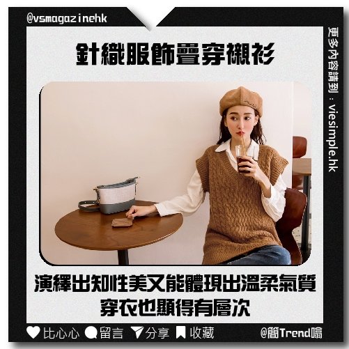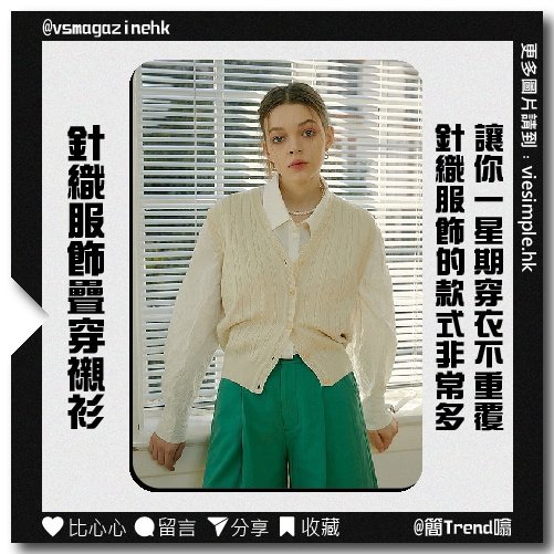 疊穿是開春穿搭最常見的一種,針織服飾與襯衫疊穿簡直是絕配,演繹出知性美的同時又能體現出溫柔氣質,穿衣也顯得有層次。針織服飾的款式非常多,讓你一星期穿衣不重覆,例如針織馬甲、針織衫、針織披肩等單品,都能與襯衫形成完美的組合方式。而且針織服飾與襯衫疊搭,既能做內搭又可以外穿。