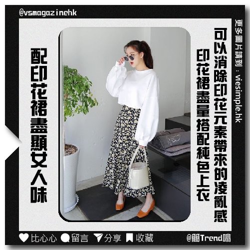 印花裙不僅能展現女性魅力,看上去還很有色彩感,而且印花裙也是一款比較百搭的單品,與襯衫、針織衫、西裝等單品都能搭配。不過,印花裙盡量搭配純色上衣,這樣可以消除印花元素帶來的凌亂感,營造出端莊的效果。