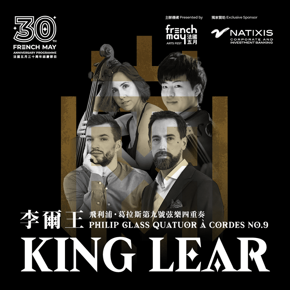 飛利浦.葛拉斯第九號弦樂四重奏《李爾王》,將於2023年5月5至6日晚上8時、假香港大會堂劇院演出,門票售價為$380和$280。