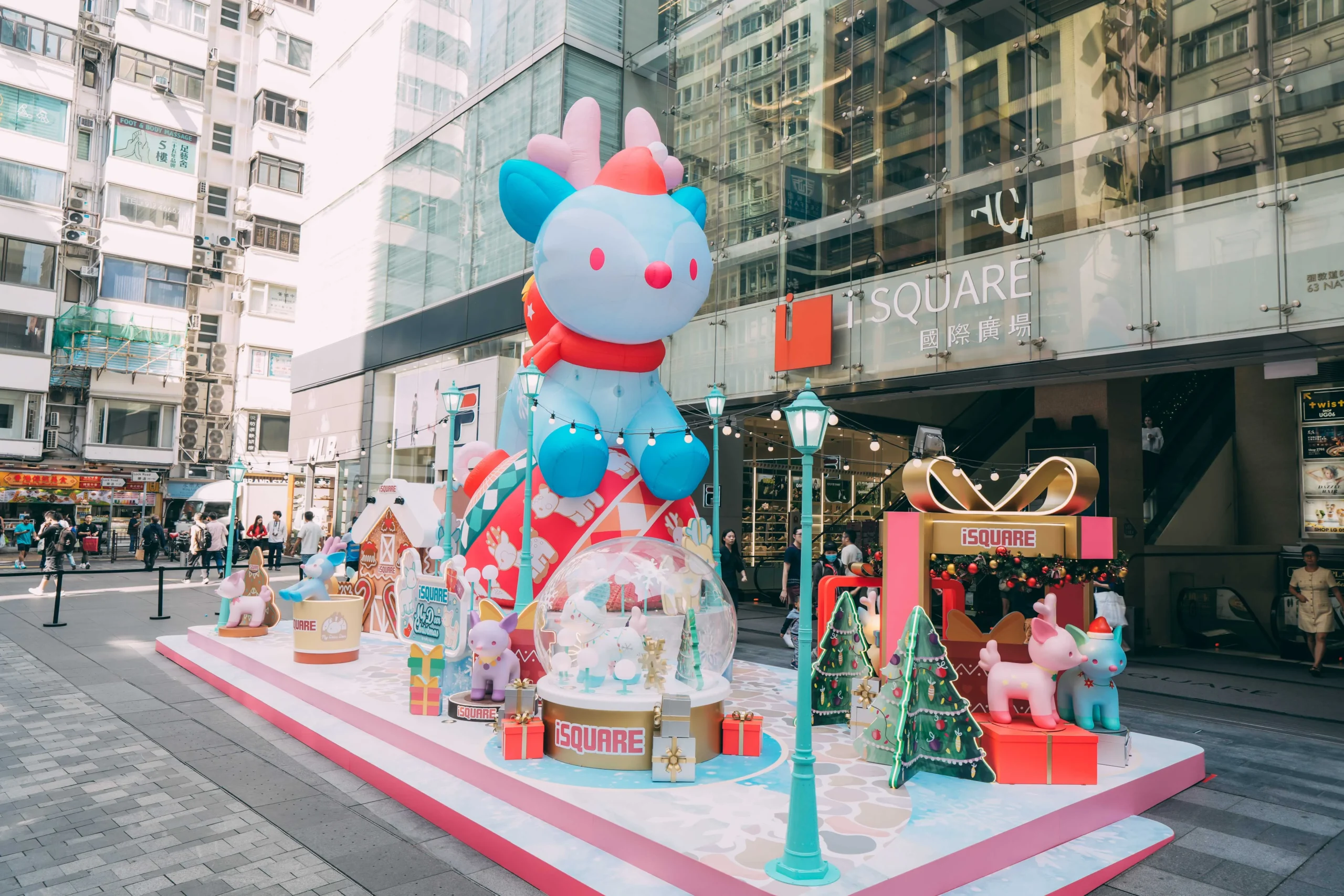 隨着小鹿的奔跑聲及清脆的聖誕鈴聲響起,一場充滿夢幻和歡樂的魔法即將於2024年聖誕展開!尖沙咀iSQUARE國際廣場變身成最萌的聖誕國度,於2024年11月8日至2025年1月1日,聯同Fluffy House 人氣角色 「親親小鹿My Dear Deer」呈獻【iSQUARE國際廣場My“Deer”Christmas】,可愛的親親小鹿在Fluffy House的盲盒玩具系列中極具人氣,今次首度登「鹿」商場大型裝置,近百隻小鹿們,身上都披着不同的糖果系色彩,插畫師也在小鹿身上傾注不同的創意圖案,讓牠們在3個童話般的雪域中或悠閒散步或活潑奔馳,等您來一起逐一「集郵打卡」。3大打卡區域包括:① iPIAZZA地下正門前的My “Deer” Christmas夢幻萌鹿聖誕小鎮,6米高的粉藍色小鹿,穿上應節的聖誕裝束,跨坐在同樣有小鹿圖案巨型聖誕吊飾波波之上,非常吸睛。② 特別為今次活動而設計3米高的「小鹿聖誕樹」,頂着鹿角聖誕帽,線條圓渾,矗立在3 樓iFUNCTION的「鹿」樹銀花童話王國之中跟親親小鹿們相處融洽。③ 走到大堂樓層iEXHIBITION的聖誕「鹿」園森度遊,聖誕小鹿們在雪境森林中自由蹓躂,粉紅色的鹿角拱門及鞦韆,配上水彩畫風的浪漫冬日背景,完全令少女心綻放!