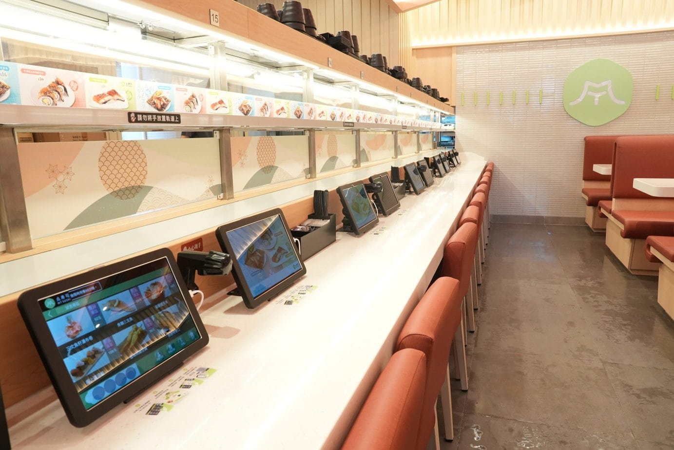点寿司新店選址元朗又新街置富中心,全店面積1216呎,共有67座位,設置了不同的用餐區及雅座,分別提供了四人、六人卡位及吧枱座位,迎合各式食客的用餐需要。新店繼承了現點現做的原則及一貫的品牌特色外,更以清新的和式木系為設計靈感,並配上以食材為主題的日式畫作,增添親切的和式情懷。