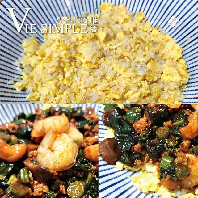 中式炒飯一向有著獨特的吸引力,同樣都是米飯,但那份粒粒分明的爽快口感加上滿滿的鑊氣蛋香,往往讓人吃不停口。其中一些懷舊做法如福建炒飯或鴛鴦炒飯,在爽口的炒飯上加上不同的芡汁佐料,又是另一種幸福美味。可惜的是現時很多飯店都沒有供應這類特色炒飯,就算有也就是及不上舊日的風味,而且炒飯用油較多加上芡汁自然亦會較肥膩高熱量,令人有點卻步,所以筆者今次就以蒟蒻飯代替了一般米飯,取其清爽口感,做成這道相對較健康亦屬低碳的【福建蒟蒻炒飯】。