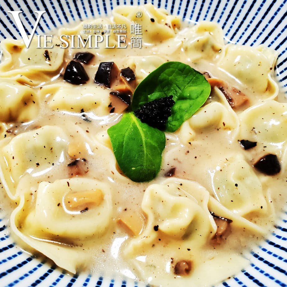 菠菜芝士雲吞配黑松露忌廉汁
