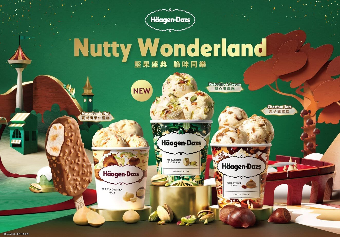 冬季將至,微寒的天氣下品嚐Häagen-Dazs™幼滑香醇的雪糕別有一番滋味,品牌全新推出兩款堅果雪糕,把優質堅果糅合於醇厚的雪糕之中,濃郁的堅果香味和層次豐富的細膩口感帶來極緻的味蕾享受,聯同皇牌產品「夏威夷果仁雪糕」和「夏威夷果仁脆糖脆皮雪糕批」,以及多款冬日雪糕特飲和蛋糕,在今個冬季,讓你體驗Nutty Wonderland堅果盛宴的「脆」味!