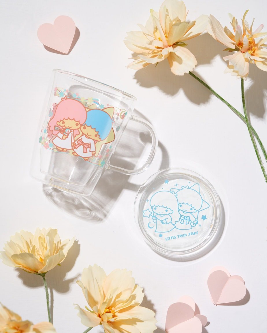限量版「Love²雙層杯」以甜蜜為主題,聯乘4位Sweet到爆的Sanrio人氣角色Hello Kitty、My Melody、Kuromi及Little Twin Stars,於杯身的前面、背面和杯蓋上,印上精緻角色及印花圖案,令人一見愛上!4款設計分別有:以紅色為主調的Hello Kitty雙層玻璃杯,杯身除了Hello Kitty,更有好朋友Tiny Chum,配上蝴蝶結和鮮花等圖案,充滿可愛氣息;My Melody款式則以夢幻的粉紅色為主調,加上草莓和印花元素,展現出My Melody的甜美感覺;淡紫色的Kuromi款式設計貫徹了她的調皮形象,杯身印有Kuromi和部下Baku的搞鬼圖案,得意至極;Little Twin Stars同樣以粉色系為主調,加上大大小小的星形和流星圖案,營造出滿滿的浪漫感覺!